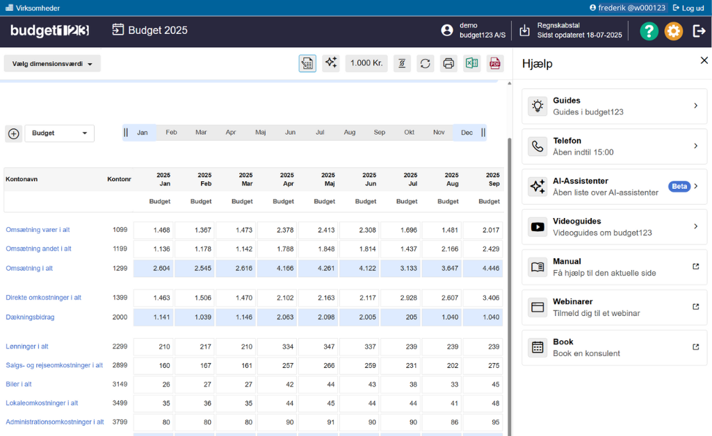 budget123 er den komplette løsning for virksomheden, økonomichefer og revisorer, der kræver fuld kontrol over økonomistyringen. Hvor Excel er tidskrævende og fejlbehæftet, gør budget123 budgettering dynamisk og automatiseret disciplin, der giver dig mulighed for at træffe beslutninger baseret på data, ikke mavefornemmelser.
