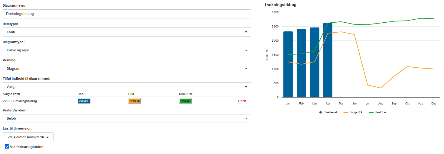 Og hvis I anvender dimensioner i regnskabssystemet, vil det også på dine dashboards være muligt at arbejde med dimensioner.