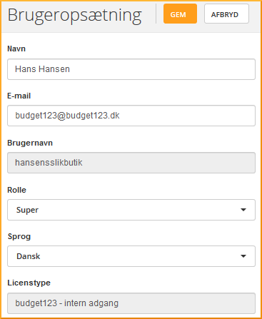 Er du administrator i budget123 og arbejder med flere interne licenser, skal du være opmærksom på at indtaste den rette afsender email-adresse samt ændre navnet på brugeren på hver enkelt licens, så modtageren ikke er i tvivl om, hvem de får en mail fra.