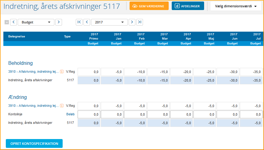 Med kontospecifikationer detaljeres budgettet på kontoniveau.