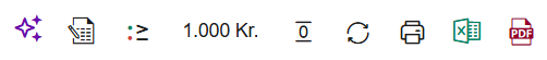 I værktøjslinjen øverst til højre finder du en række hjælpeværktøjer, der går igen på tværs af systemet. Uanset om du arbejder med budgettering, rapportering eller analyse, hjælper disse funktioner dig med at tilpasse visningen, masse-opdatere tal og eksportere dine data.